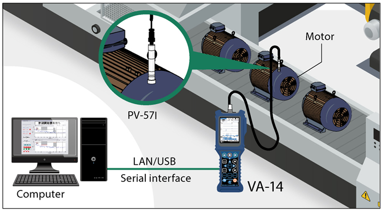 利用 VA-14 的測量數據構建生產線的合格 / 不合格評估系統。通過 USB 或 LAN 連接即可與計算機通信,并且可通過命令對設備進行控制以及使用以下功能: