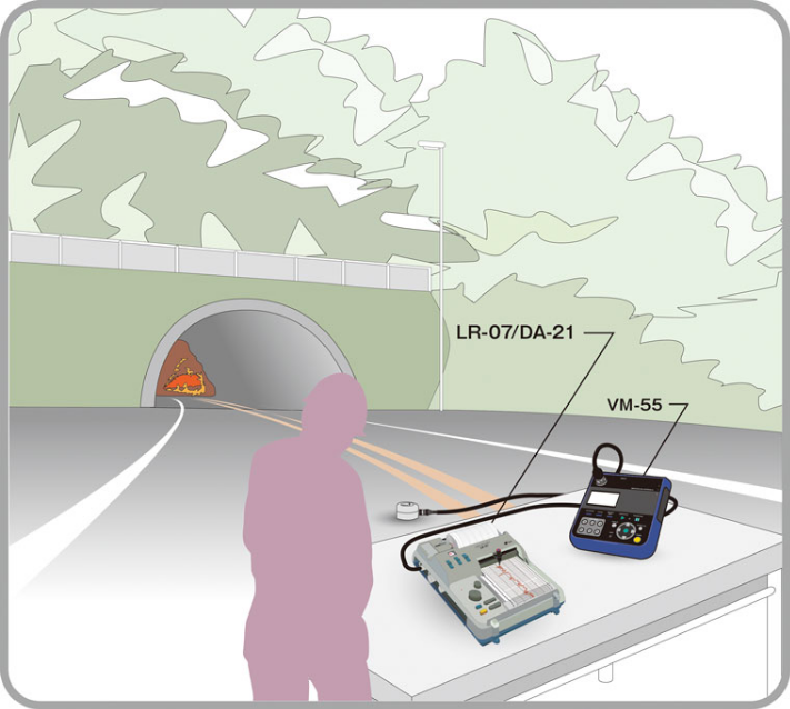 此系統可用于處理振動加速度等級。振動測量儀 VM-55 可以進行三向振動測量。等級記錄儀 LR-07 和數據記錄儀 DA-21 可用于長時間保存原始數據。