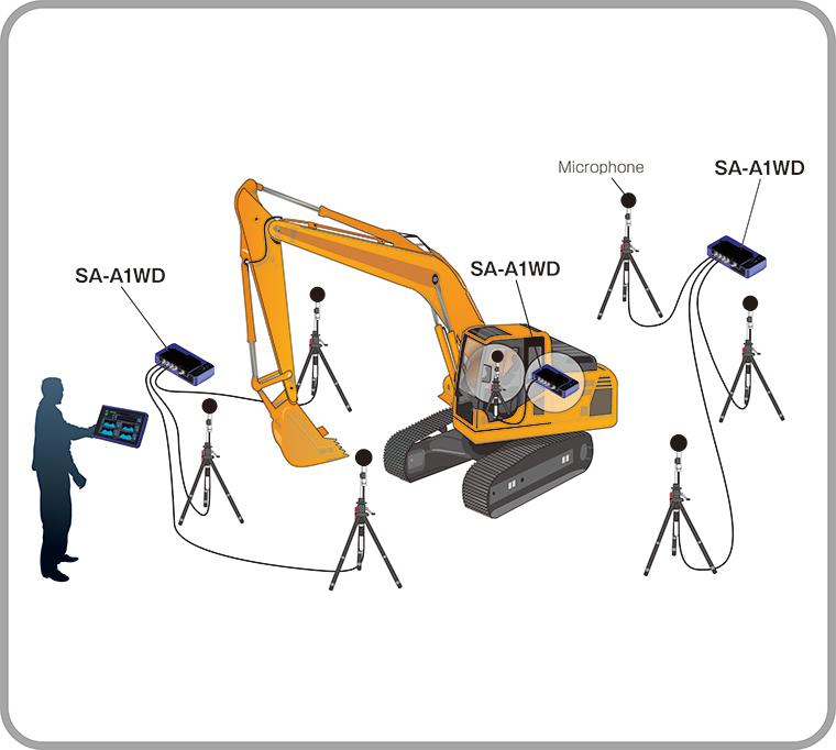 使用 SA-A1 便攜式測量分析系統和無線發射器 SA-A1WD 可以實現減少測量所需的操作人員。例如,在測量工程機械噪聲和振動的傳統系統里,通常必須由一位駕駛員來驅動機械,而其他人員負責操作測量設備。