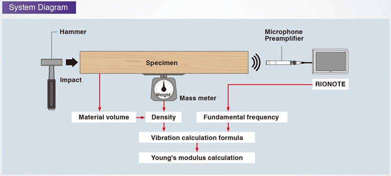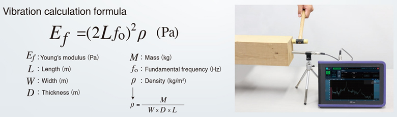 通過 SA-A1 測量敲擊木材的聲音,可根據聲頻、木材體積和密度計算楊氏模量。楊氏模量是表示材料變形難易程度和剛度的指標,用于結構分析、強度計算、特征值分析等領域。通過合理設定楊氏模量,能夠防止產品變形量和應力分布的預測與實際表現偏差過大。